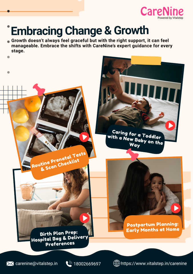 Routine Prenatal Tests & Scan Caring for a Toddler with a New Baby Birth Plan Prep: Hospital Bag & Delivery Preferences Post partum Planning Early Months at Home